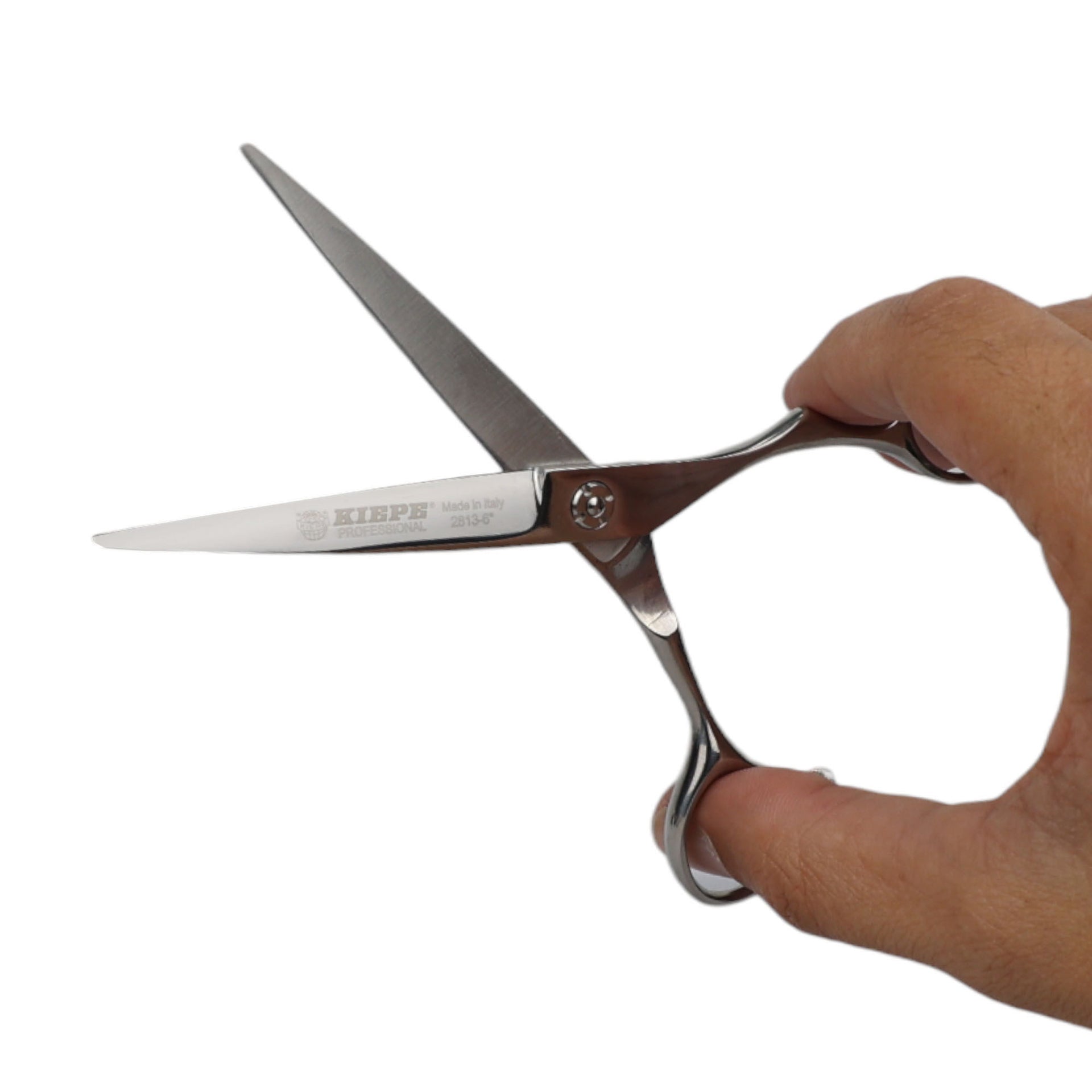 The Kiepe 2813 Monster Cut Razor Edge Scissors Semi Offset 6 Inch (16cm) are designed with stylist endurance in mind, featuring a comfortable semi-offset handle that helps to reduce wrist and shoulder strain. This ergonomic design allows for a more natural hand position, essential for maintaining control and comfort during a busy day. A high-precision tension system allows for micro-adjustments to achieve a perfectly smooth cutting action. Made in Italy, this is a premium tool for professionals who demand performance and comfort from their scissors.