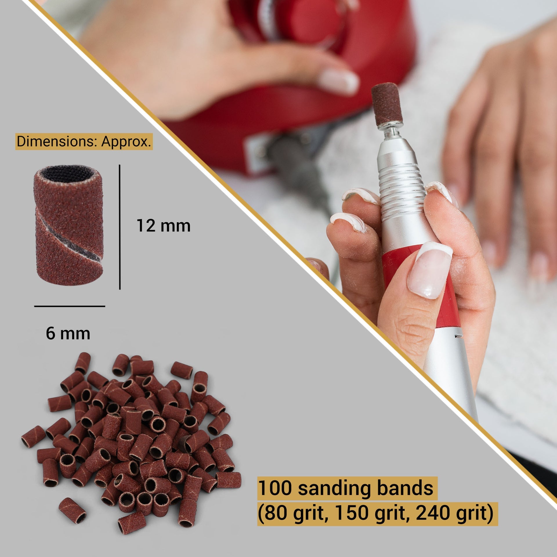 - Includes 100 sanding bands with 80, 150, and 240 grit levels for versatile nail care.