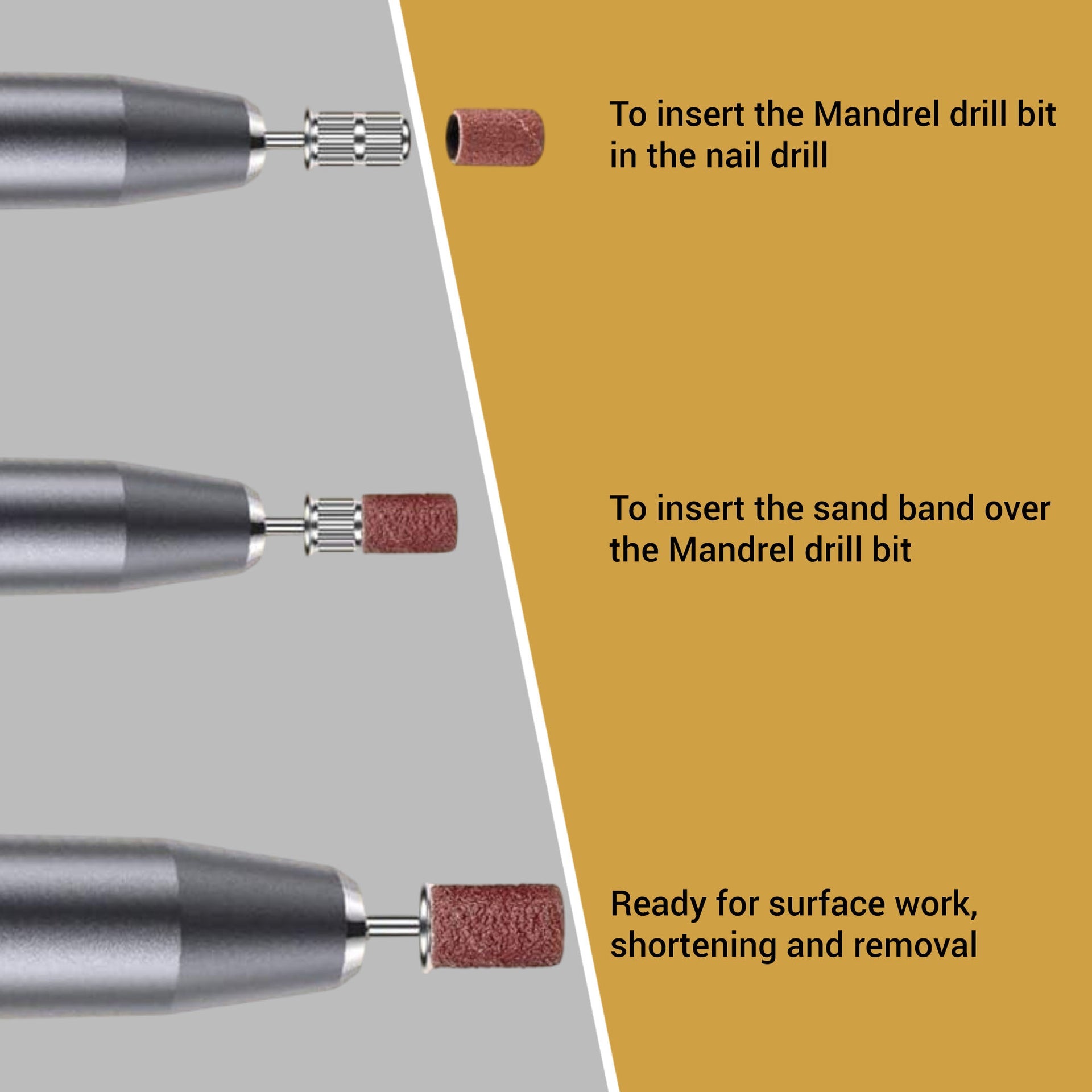 - Compatible with standard nail drill bits for ease of use.